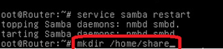 Setelah itu, silahkan sobat keluar dari konfigurasi lalu restart Samba server-nya. Caranya seperti gambar di atas, dengan memasukkan perintah “service samba restart” lalu tekan “enter”
