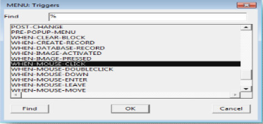 b. Keluar kotak dialog Triggers > WHEN-BUTTON-PRESSED > OKc. Masukan script seperti dibawah ini